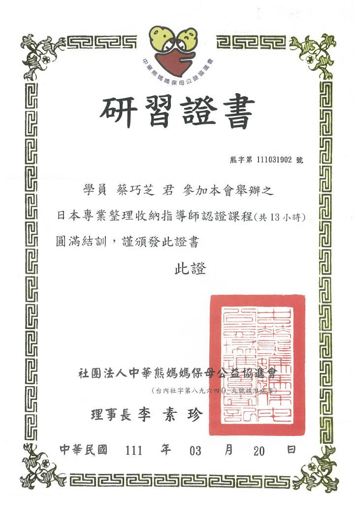 她認為,生活即藝術,美學精神俯拾即是,秉持純粹傳遞生活美學初衷,善用「在設計」室內空間,用心打造「在設計藝文室」,吸引許多優質藝文界師資,在此開班授課,藝文室的存在並非為了營利,而是希望為相關產業的設計師與藝術家們,打造一方喘息空間,設計產業常需要耗損相當多時間與心力投入專案工作,唯有好好充飽電後,才能重新注入豐沛情感,將好的創作能量回饋給每位客戶,正是這份單純心意,讓愛與美,在此地交流,溫暖彼此的心。